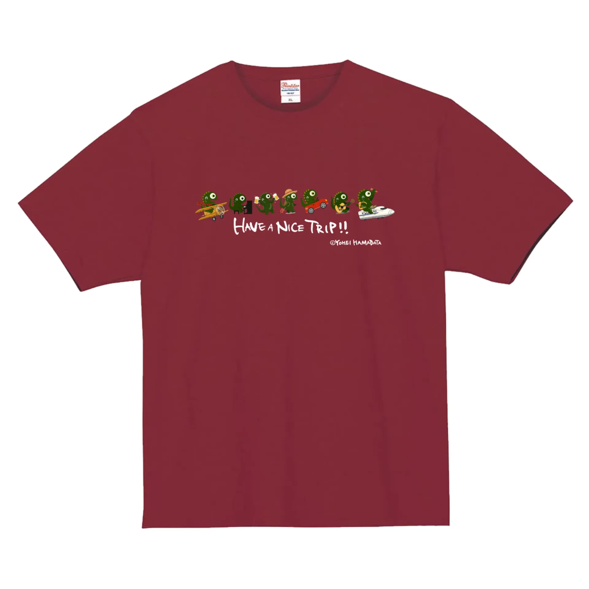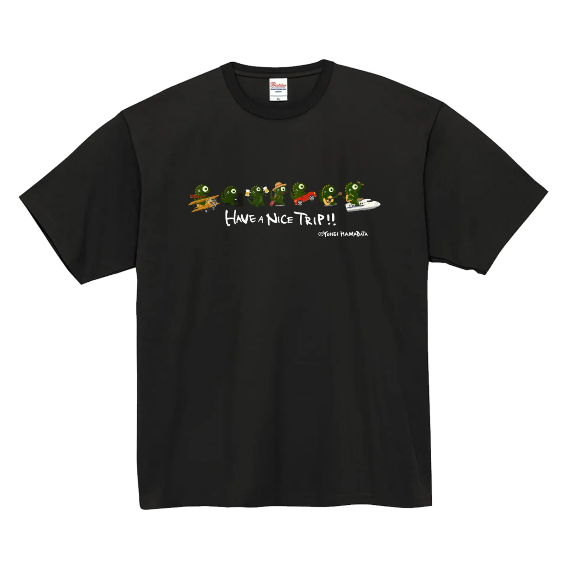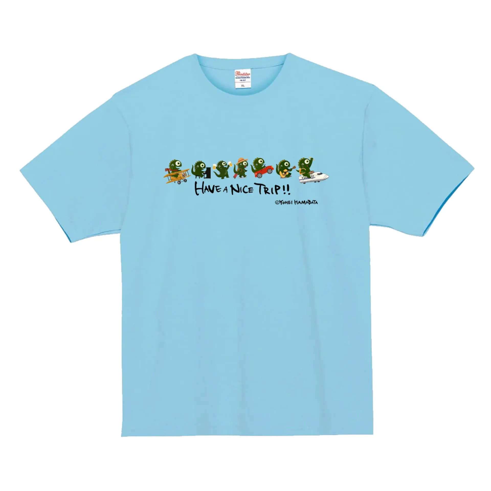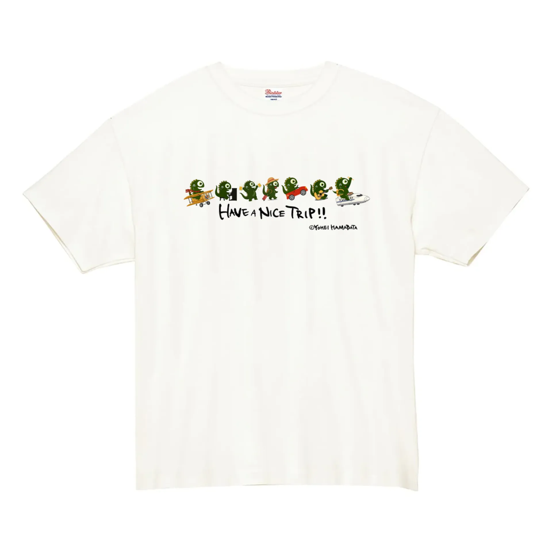 旅に出かけるバタやんと、浜端ヨウヘイ手書きの「HAVE A NICE TRIP!!」の文字がプリントされています。